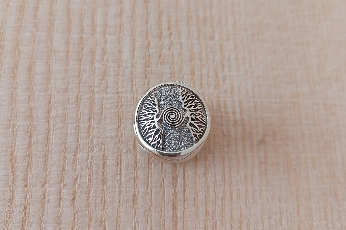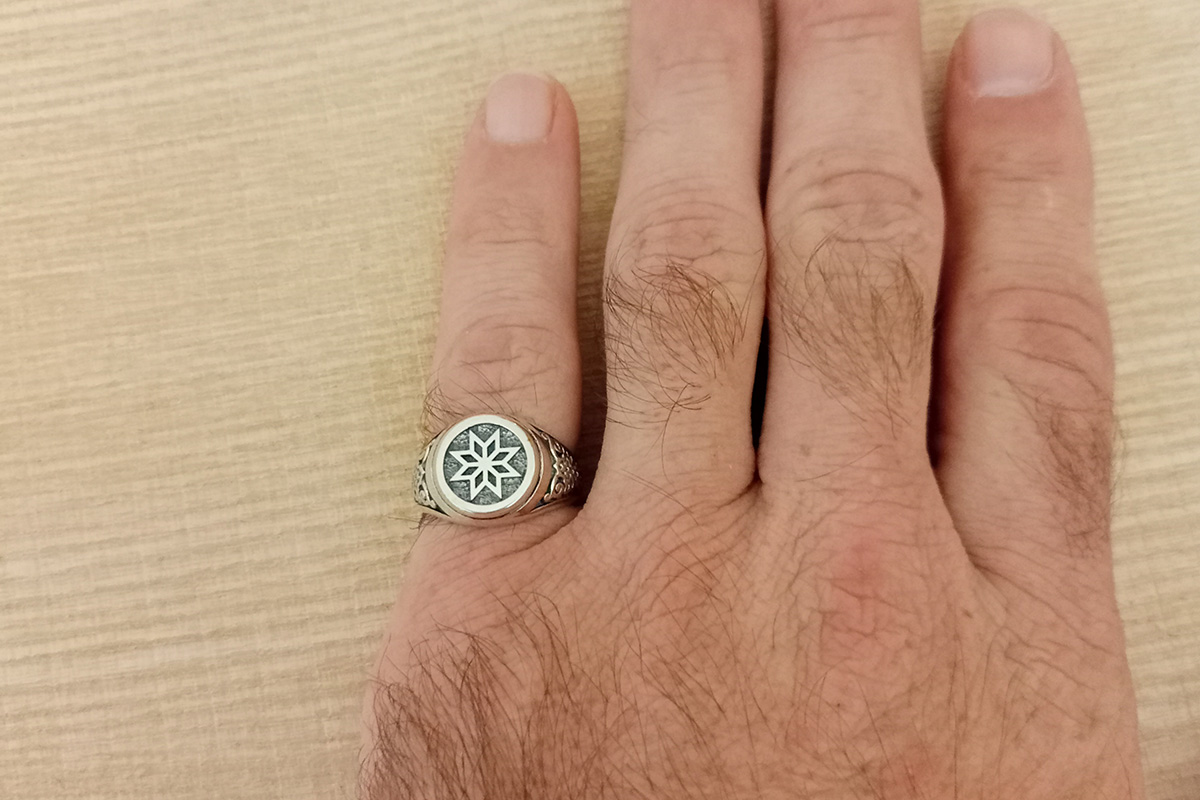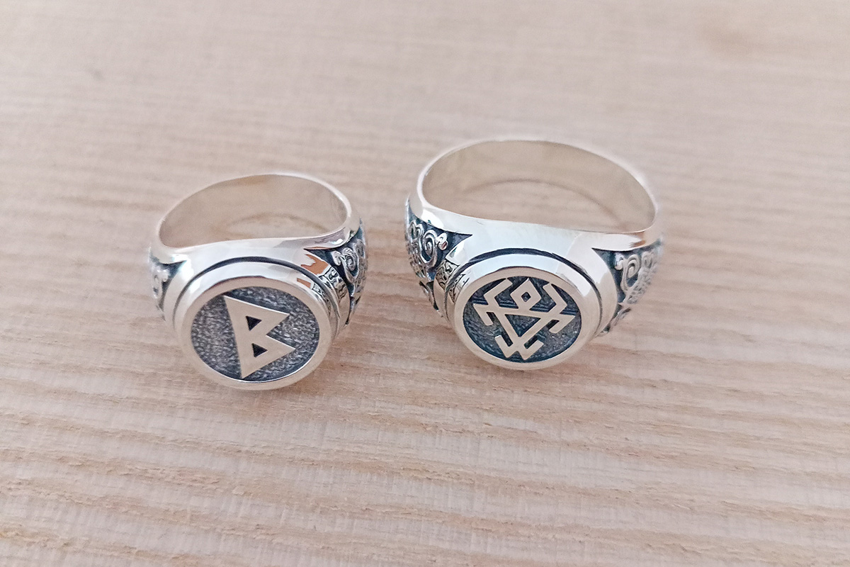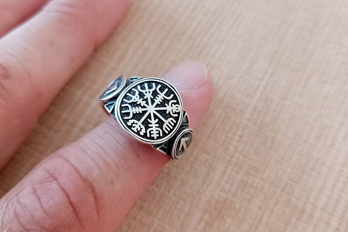 Кольцо с руническим компасом Вегвизир и рунами Тейваз (Тюр) - Путь Воина