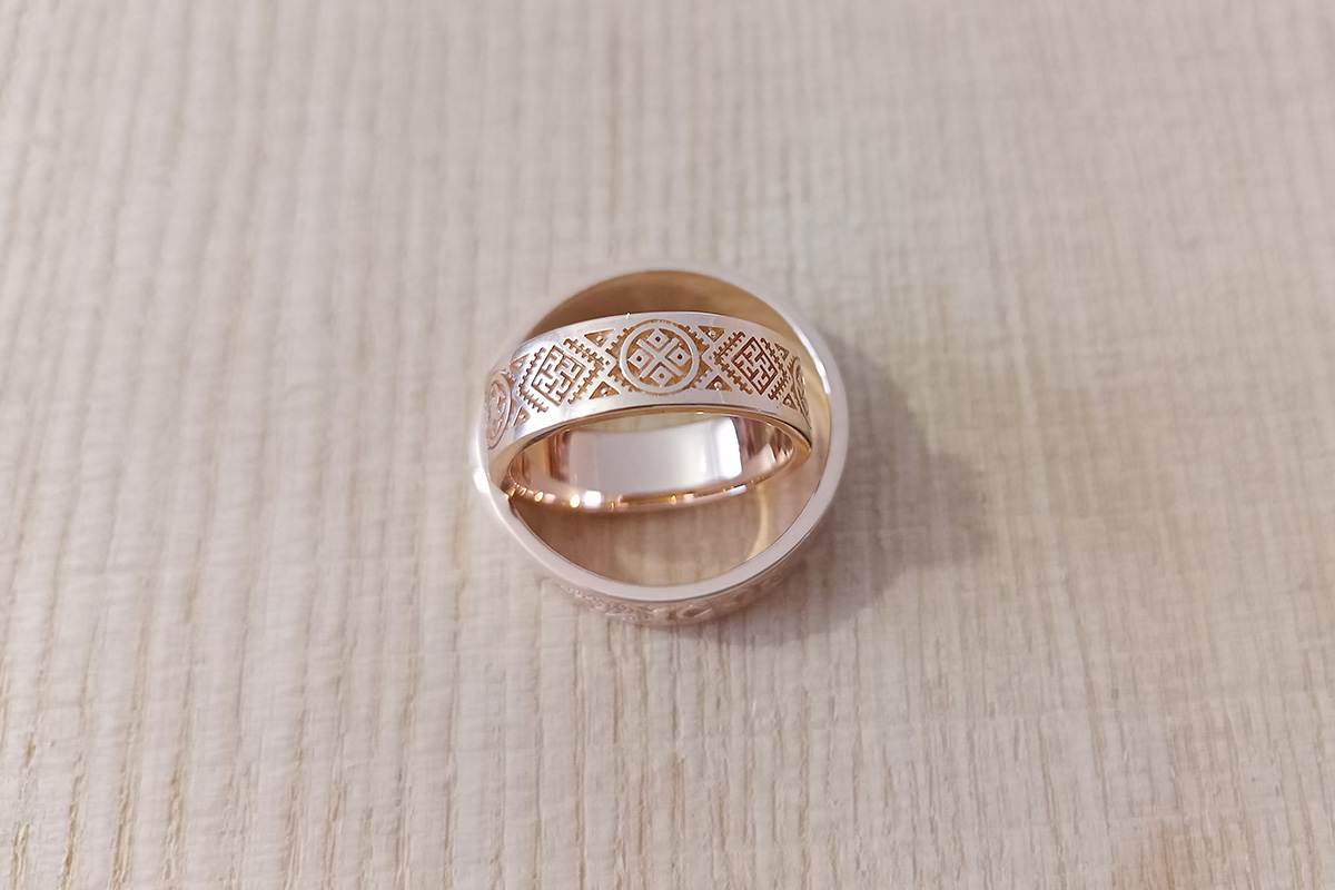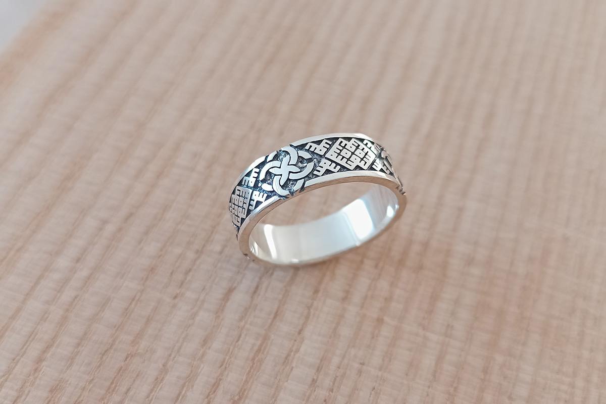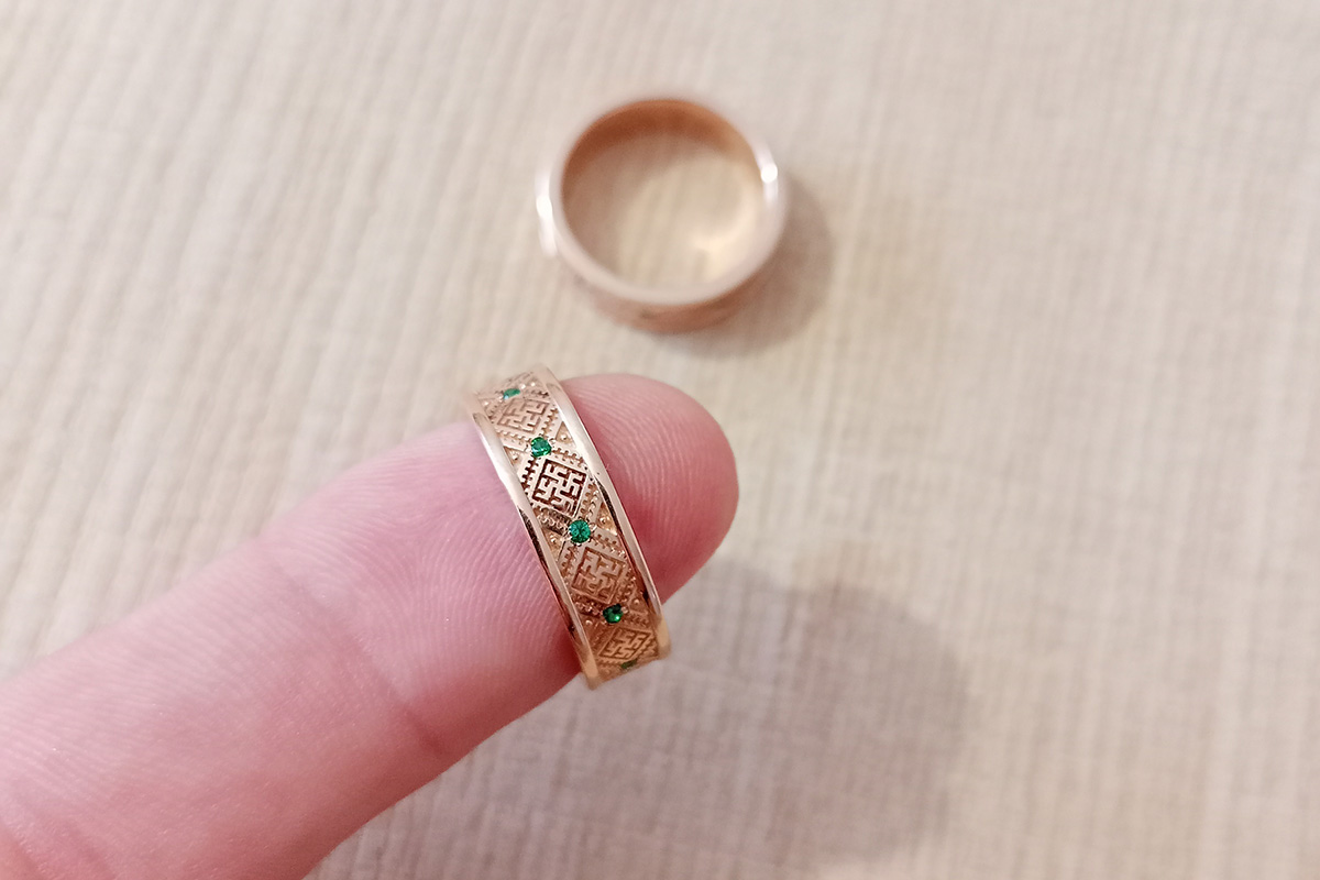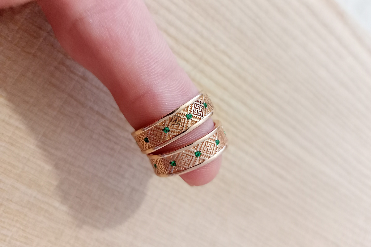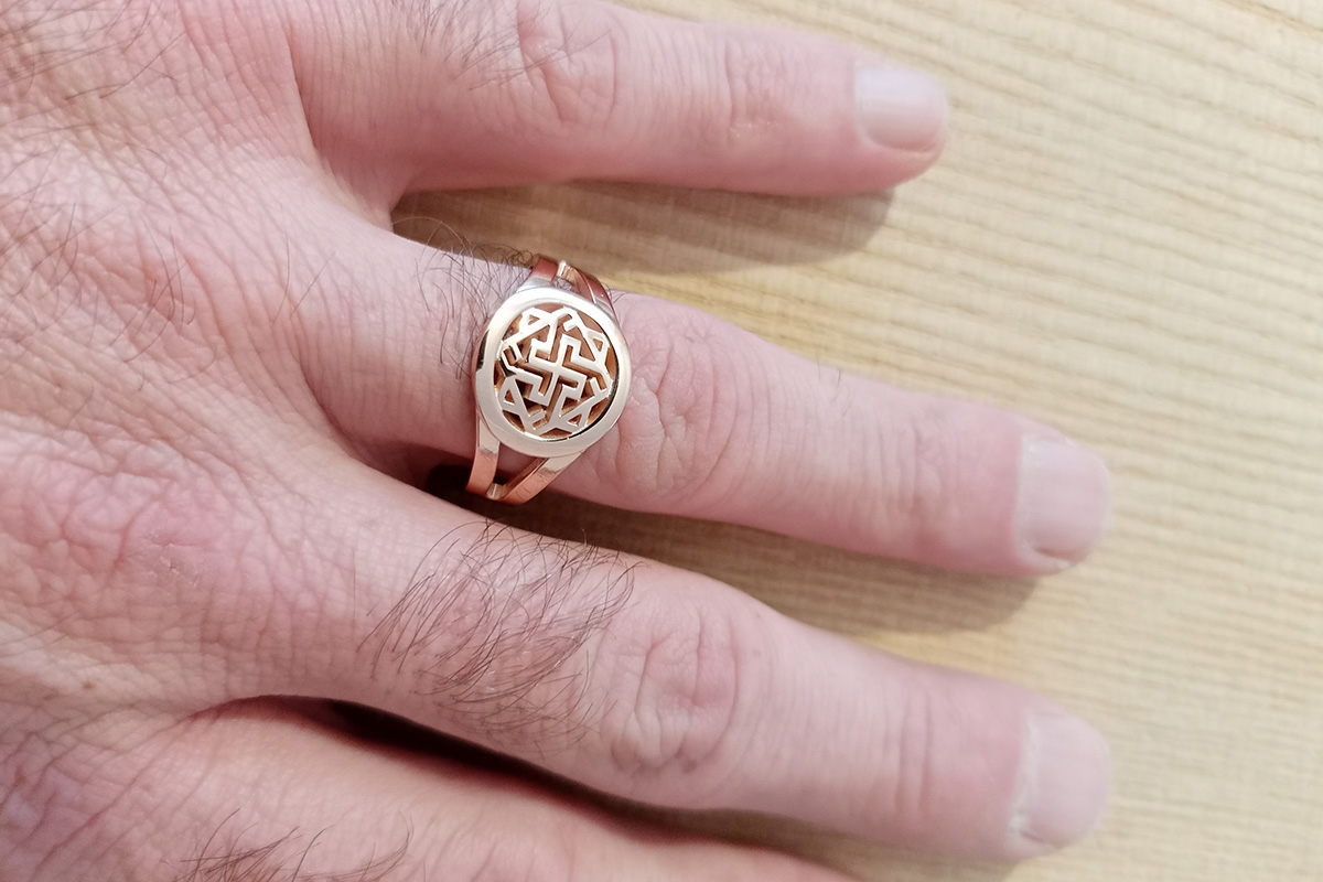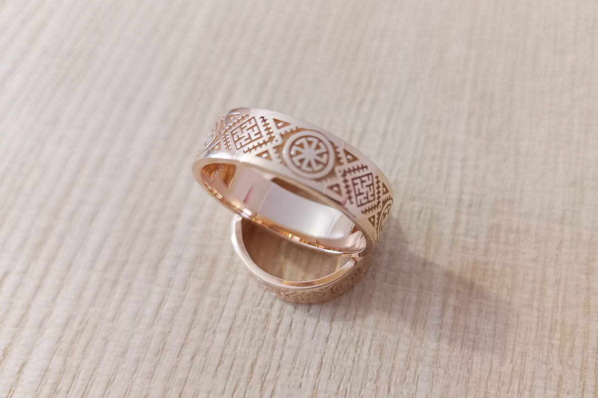 Обережное кольцо из золота Одолень трава и Цветок папоротника